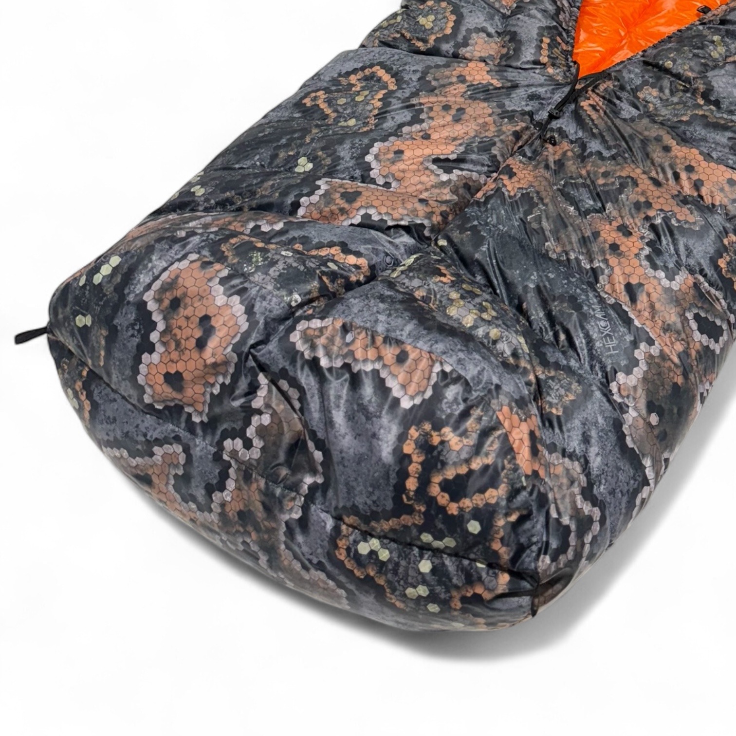 HEXCAM® Patterns are digitally printed using the same process as OutdoorINK® on a 20d 1.1 oz breathable, double-calendared polyester micro ripstop with DWR applied. This fabric is DOWNPROOF and suitable for use in down gear/projects. Similar to 1.1 oz ripstop nylon, but with less stretch, increased UV resistance, and a micro-ripstop grid pattern. MRS20-P has received a 5 out of 5 score on the International Rotating Box Down proof Test (a score of 3 is considered average). MRS20-P is the best overall outer shell fabric for weight, durability, down proof score for those looking to have a unique printed quilt.
