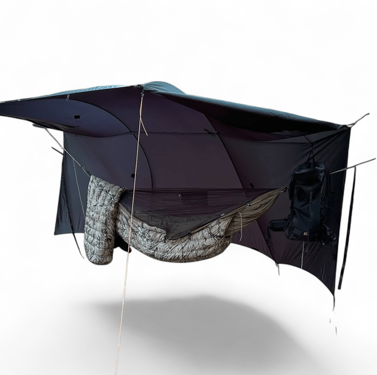 Outstanding quality and a superior design. One area for improvement – I would have gladly paid an extra $10 for a pole bag. It seems like a sloppy omission for a $300 custom tarp with a pole mod.